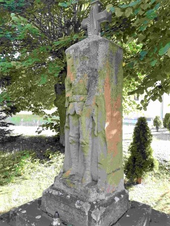 Der Kopf des Soldaten und die seitlichen Namensflächen sind beschädigt.