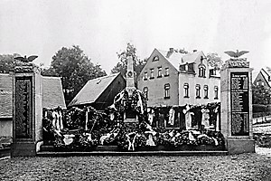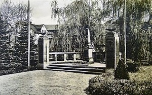 Weltkrieges erweitert (Bild 2). Das alte Denkmal stand nun in einer kleinen Anlage. Links und rechts standen zwei Pylonen