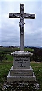 Flurkreuz mit Inschrift am Ortsausgang von Rettern, gegenüber der Dorfkapelle.