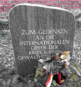 Auf dem Friedhof ein NS-Opfer Grab und ein Soldatengrab.