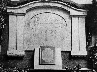 Von diesem Gedenken findet man keine Aufnahmen im Internet. Das Foto entstammt dem Buch „Deutscher Ehrenhain für die Helden von 1914/18“ im Dehain Verlag, Leipzig 1931. Die Gedenktafel wurde nach 1945 demontiert und ist verschwunden. Das Gedenkbuch könnte noch im Archiv der Universität existieren.