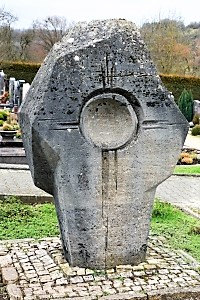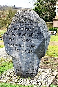 Neues Ehrenmal ohne Namen auf dem Friedhof in Rubenheim. Das Steindenkmal wurde von dem Rubenheimer Bildhauer Josef Fromm gestaltet.