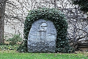 Gedenkstein in der Gasse „Rathausbogen“, auf einer kleinen Grünfläche zwischen dem Rathaus und dem Kantonsgericht