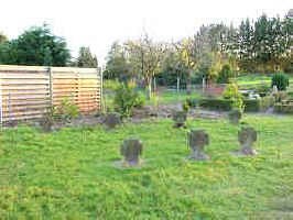 Auf dem Gemeindefriedhof: Grabanlage für sieben gefallene Soldaten des Zweiten Weltkrieges.