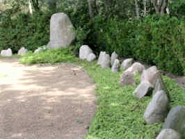 Auf dem Kirchhof zum Gedenken der 46 Kriegstoten des Zweiten Weltkrieges ein großer aufrechter Findling mit Inschrift, daneben 44 kleine Feldsteine mit den Namen, die teilweise verwittert und nicht immer gut lesbar sind.