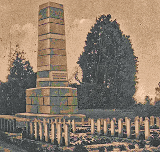 dem Denkmal vorgelagert waren. Von diesen Stelen sind nur noch einige wenige erhalten und flach neben dem Denkmal abgelegt.