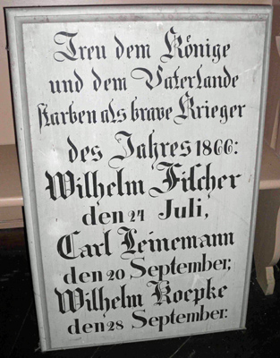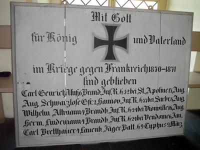 da dies laut königlicher Anweisung bei vorhandenen Kriegsopfern Pflicht war. Heute ist keine Tafel erhalten.