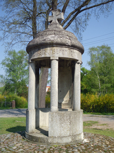 Denkmal für die Gefallenen des 1. Weltkrieges in Form eines runden Tempels, gekrönt von einem EK-Zeichen (2015 saniert).