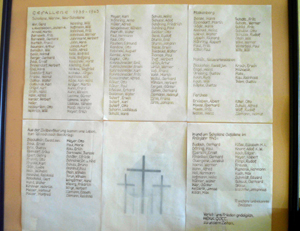 Gedenkblatt für die Opfer des 2. Weltkriegs im Pfarrhaus.