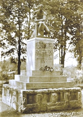 Das Denkmal wurde nach 1945 zerstört. Nur die Widmungsplatte scheint noch erhalten zu sein.