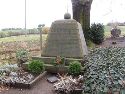 Auf dem Friedhof steht das in Form einer Pyramide gestaltete Denkmal. An den Seitenflächen stehen die Namen.