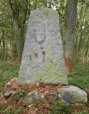 Denkmal für die Gefallenen des Ersten Weltkriegs auf dem ehemaligen evangelischen Friedhof nordwestlich weit außerhalb des Dorfes: Natursteinsockel mit aufgerichteter pyramidenförmiger Steinplatte. Die Inschriften sind schon sehr verwittert und auch mit Hilfsmitteln nur schwer lesbar zu machen.