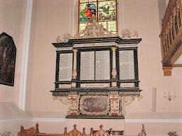 Prächtige dreiflügelige, reichverzierte Tafel in der Kirche. Oben ein Kreuz, rechts und links die Jahreszahlen 1914 und 1918, unten ein Bild des Abendmahles.