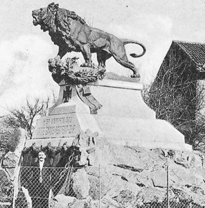 Denkmal des 3. Garde Regiments zu Fuß für seine gefallenen Angehörigen im Kriege 1870/71. Hügel mit aufgesetzter Löwenfigur.