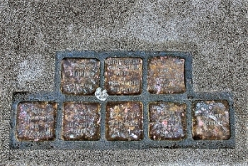 Gedenksteine in der Hauptstraße 4 vor dem St. Sebastian Kolleg, die den Stolpersteinen nachempfunden wurden.