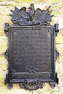 Auf der Innenseite der Kirchenmauer eine Gedenktafel eines Verstorbenen des Krieges 1870/71.