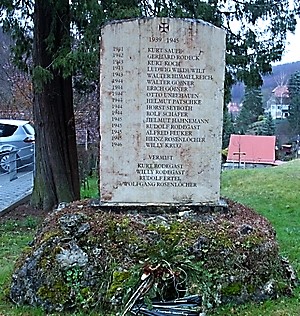 Namen der Opfer der beiden Krieges aufgenommen hat. Die Stele wurde nach der politischen Wende aufgestellt.