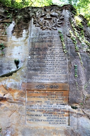 Das Kriegerdenkmal von Spittelstein und Theißenstein liegt am Waldrand oberhalb der Ortschaft und ist aus einer senkrechten Sandsteinwand herausgeschlagen.