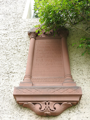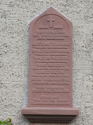 Zwei künstlerisch gestaltete Wandplaketten an der Dorfkirche