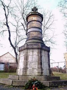 mit kuppelartige Überdachung. Darauf ein EK aus Stein. Die Namen sind umlaufend.