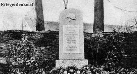 Der Verfasser fand im Jahre 2022 dort nur noch eine große Baustelle vor, in der die Straße verbreitert wurde. Von drei alten Anwohnern wurde bestätigt, dass der „pomnik niemiecki“ (deutsches Denkmal) von der Baufirma abgeräumt wurde. Er wird wohl nun für immer verloren sein und vielleicht als Baumaterial verwendet. Namen wurden von den Bildern obiger Seite notiert.