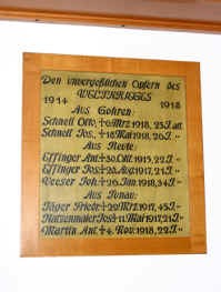 Zwei Gedenktafeln in der Josefskapelle unter der Orgelempore.