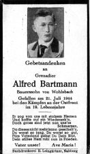 Grenadier | BARTMANN | Alfred | 18.03.1925 Wohlsbach | 28.09.1944 35 km südost. Bialystock |