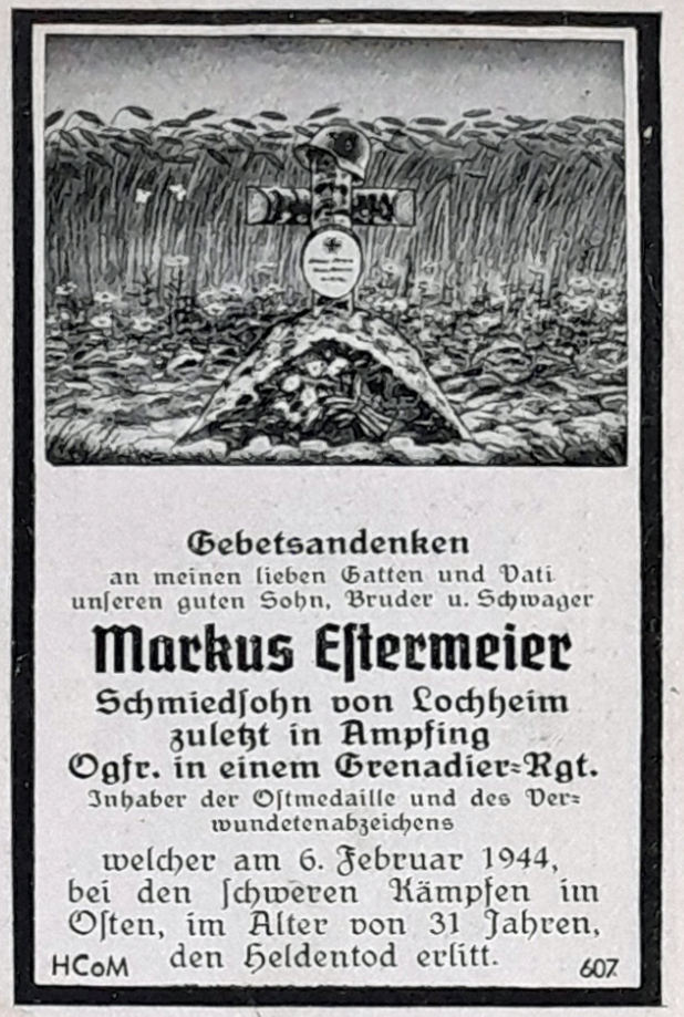 Obergefreiter | ESTERMEIER | Markus | 31 Jahre | 06.02.1944 im Osten |