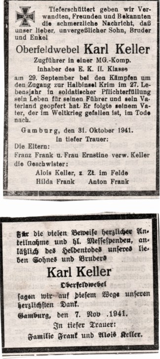 Oberfeldwebel | KELLER | Karl | 27.12.1914 Gamburg |