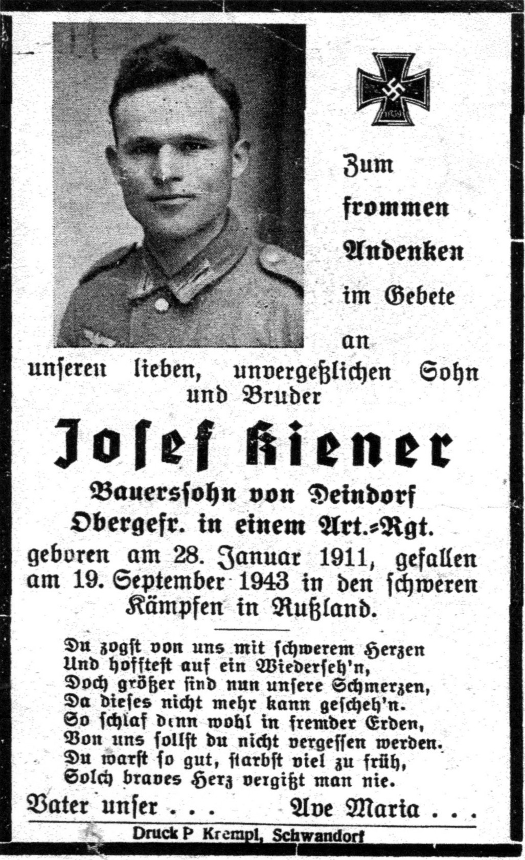 Obergefreiter | KIENER | Josef | 28.11.1911 Deindorf |