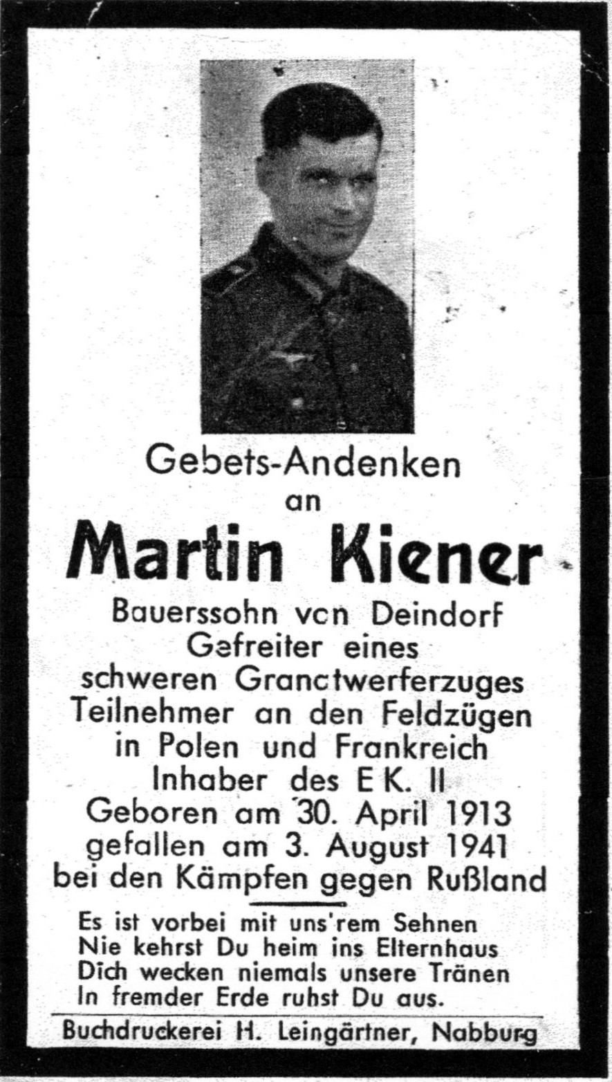 Gefreiter | KIENER | Martin | 30.04.1913 Deindorf |