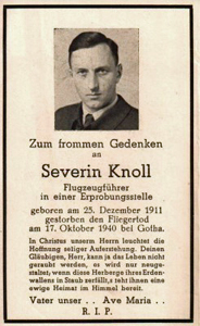 Flugzeugführer | KNOLL | Severin | 25.12.1911 Hechingen | 17.10.1940 bei Gotha |