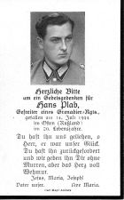 Gefreiter | PLAB | Hans | 20.09.1924 Schwandorf | 14.07.1944 21.08.1944 Rußland b. Ermoclia |