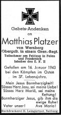 Obergefreiter | PLATZER | Matthias | 23.08.1906 Wernberg |