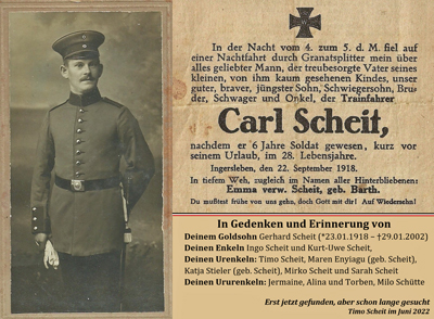 Trainfahrer | SCHEIT | Karl | 29.11.1890 Ingersleben | 04.09.1918 | auf einer Nachtfahrt durch Granatsplitter Soupir‑Frankreich: Block 1 Grab 625 |