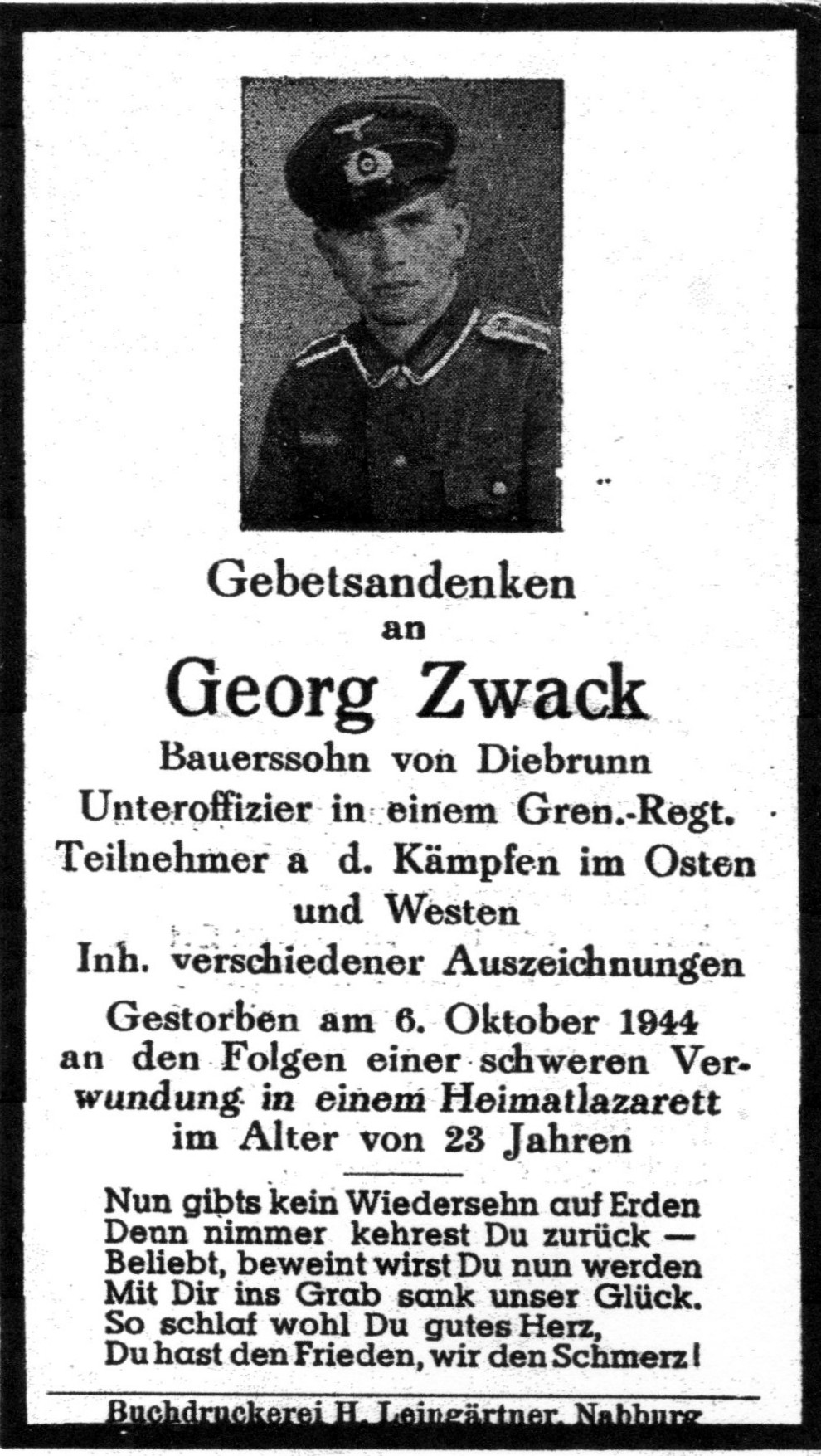 Unteroffizier | ZWACK | Georg | 30.04.1920 Diebrunn |