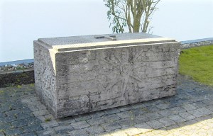 Kirchenvorplatz: Steinblock mit Inschrift sowie den Namen der Gallenen und in der Heimat Verstorbenen beider Weltkriege.