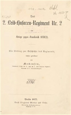 Quelle: Das 2. Leib-Husaren-Regiment Nr. 2 im Kriege gegen Frankreich 1870/71. Ein Beitrag zur Geschichte des Regiments; diesem gewidmet von Mackensen, Lieutenant bisher im 2., jetzt 1. Leib-Husaren-Regiment, Adjutant der 1. Kavalleriebrigade. Berlin 1877. Ernst Siegfried Mittler und Sohn. Königliche Hofbuchhandlung, Kochstraße 69-70.
