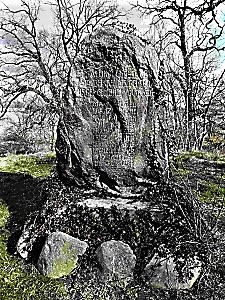 Denkmal für die Gefallenen des 1. Weltkriegs auf dem Deich über der Elbe: Sockel aus Feldsteinen mit aufgesetztem Felsblock.