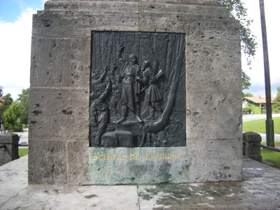 Säule mit Löwen, Inschrift und Relief vom Schwur bei Lenggries.