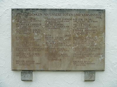 Gefreiter d. Reserve | GANSSLOSER | Ludwig | 04.04.1887 Weiler | 10.09.1914 Frankreich | W.Inf.Rgt.Nr.127 | |