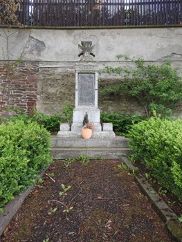 An der Frontseite eine Metalltafel mit den Namen der Gefallenen.