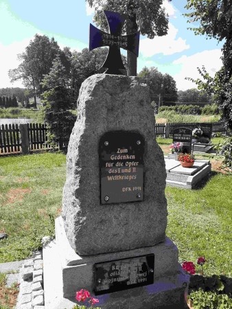 Das Denkmal wurde ursprünglich für die Gefallenen des 1. Weltkriegs errichtet. Auf der Rückseite ist noch eine Inschriftenfläche mit vielen kleinen Löchern sichtbar, in denen früher Metallbuchstaben befestigt waren.