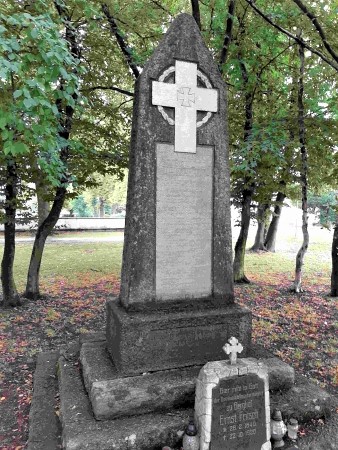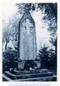 In der Nähe der Friedhofskapelle steht das unversehrte Denkmal für die Gefallenen des Ersten Weltkriegs, bestehend aus einem vierstufigen Sockel und einer aufgerichteten Steinplatte mit oben eingelassenem christlichem Kreuz mit EK-Zeichen. Nur vier Kugeln unten wurden entfernt.