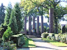 Auf dem Kommunalfriedhof: Im Jahre 1931 wurden 5 ca. 8m hohe Säulen aus rotem Backstein errichtet, die mit beschrifteten Tafeln verbunden sind. Die Säulen tragen die Jahreszahlen 1914 bis 1918.