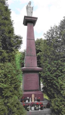 Nach 1945 wurden alle deutschen Inschriften und Zeichen entfernt und ein christliches Denkmal mit krönender Marienfigur daraus gemacht.