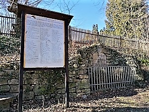 Auf einer Informationstafel sind heute Namen, Alter, Herkunftsort und Dienstgrade der Gefallenen zu lesen.