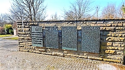 vier Metalltafeln mit den Namen der Opfer des 2. Weltkriegs angebracht.