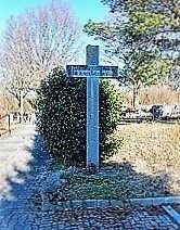 In unmittelbarer Nähe steht ein Steinkreuz zum Gedenken an die Toten im deutschen Osten.