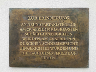 Foto © 2022 Wikimedia Commons: File:Gedenktafel Spartakisten Friedhof Zell (Schäftlarn).jpg (Foto verkleinert)